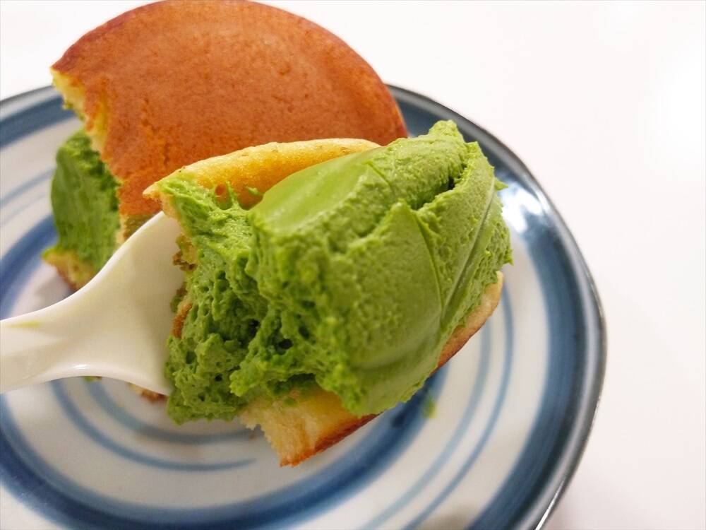 驚異のクリーム量 セブン たっぷり抹茶くりいむ生どら焼き 苦みが効いて案外ぺろっといける えんウチ